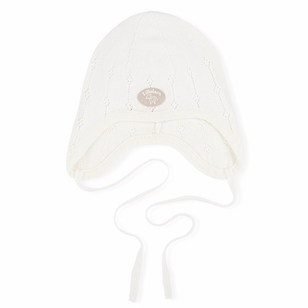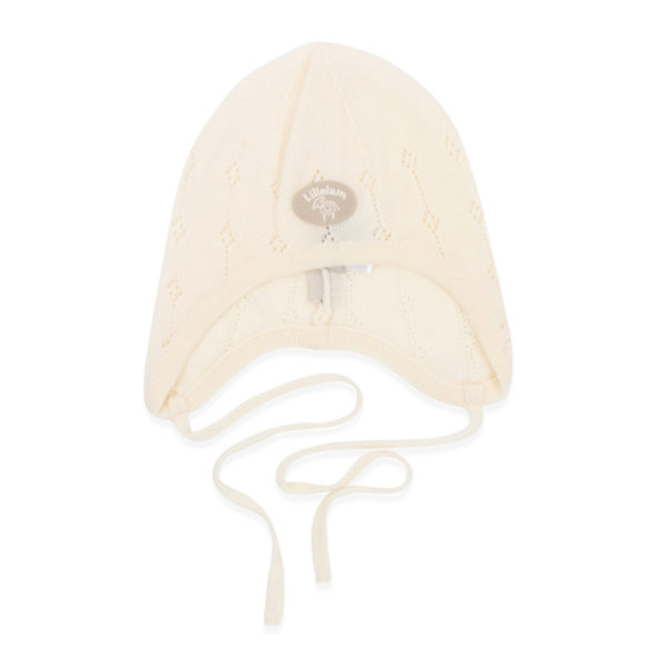 Our classic best selling babyhat with ties and knitted pattern, in thin Merino wool. The hat has a great fit, and can be used on its own, or even as an extra layer underneath another hat.